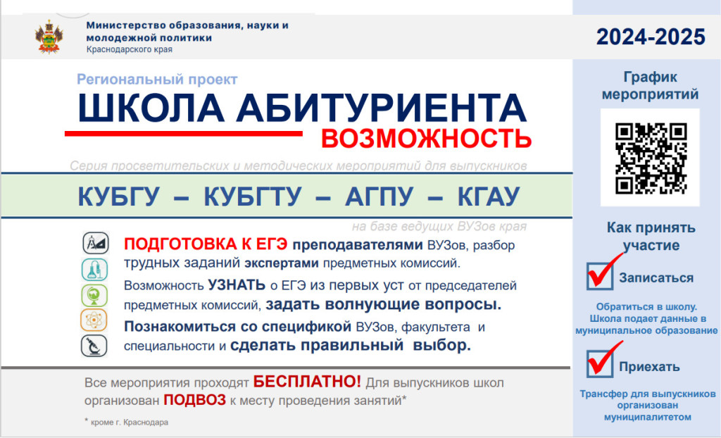 В Краснодарском крае реализуется региональный проект «Школа абитуриента».