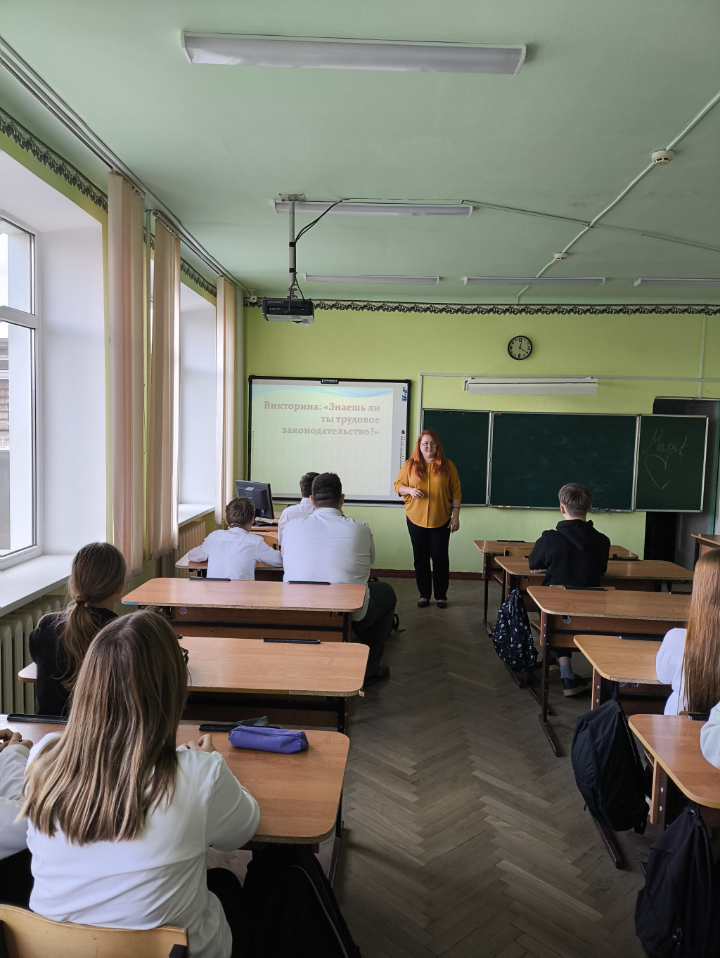 Также с учащимися была проведена викторина "Знаешь ли ты трудовое законодательство?".